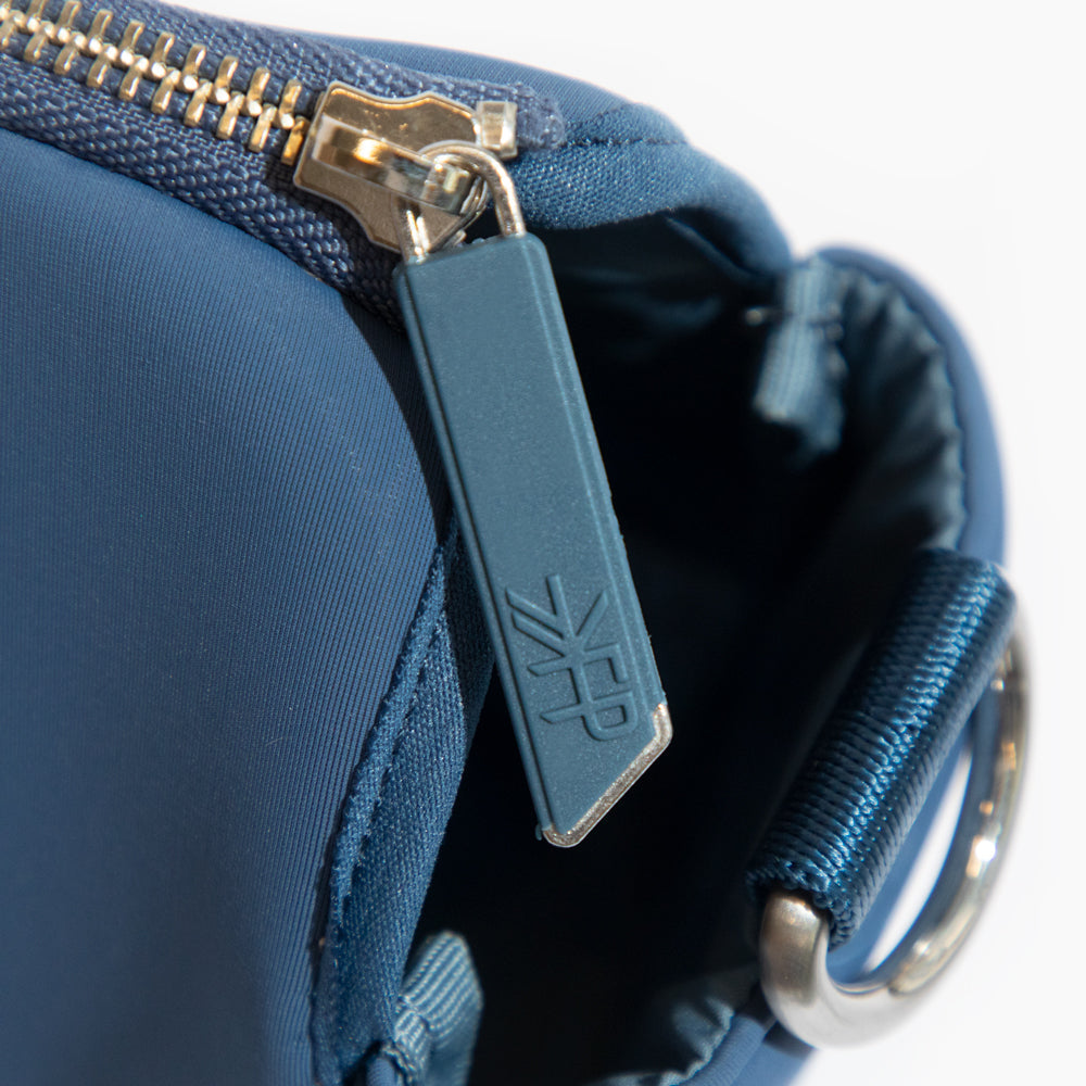- Easy access front zipper pocket that fits up to 6.7" display phone