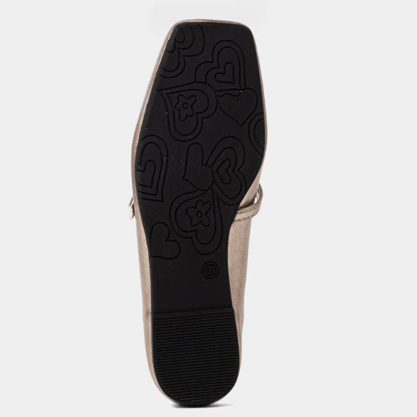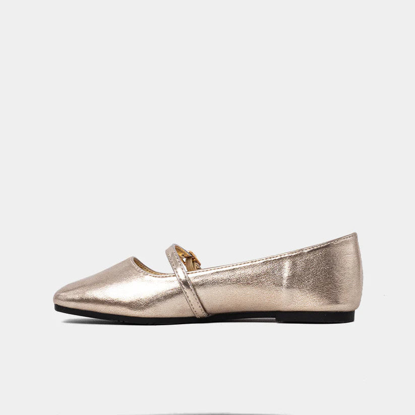 A little shimmer, a lot of charm. The ADELE MINI in Light Gold brings a classic silhouette to the next level with its luminous faux leather finish and delicate Mary Jane strap. Designed exclusively for kids, this style adds a subtle sparkle to every step, whether it's a school day or a special occasion.