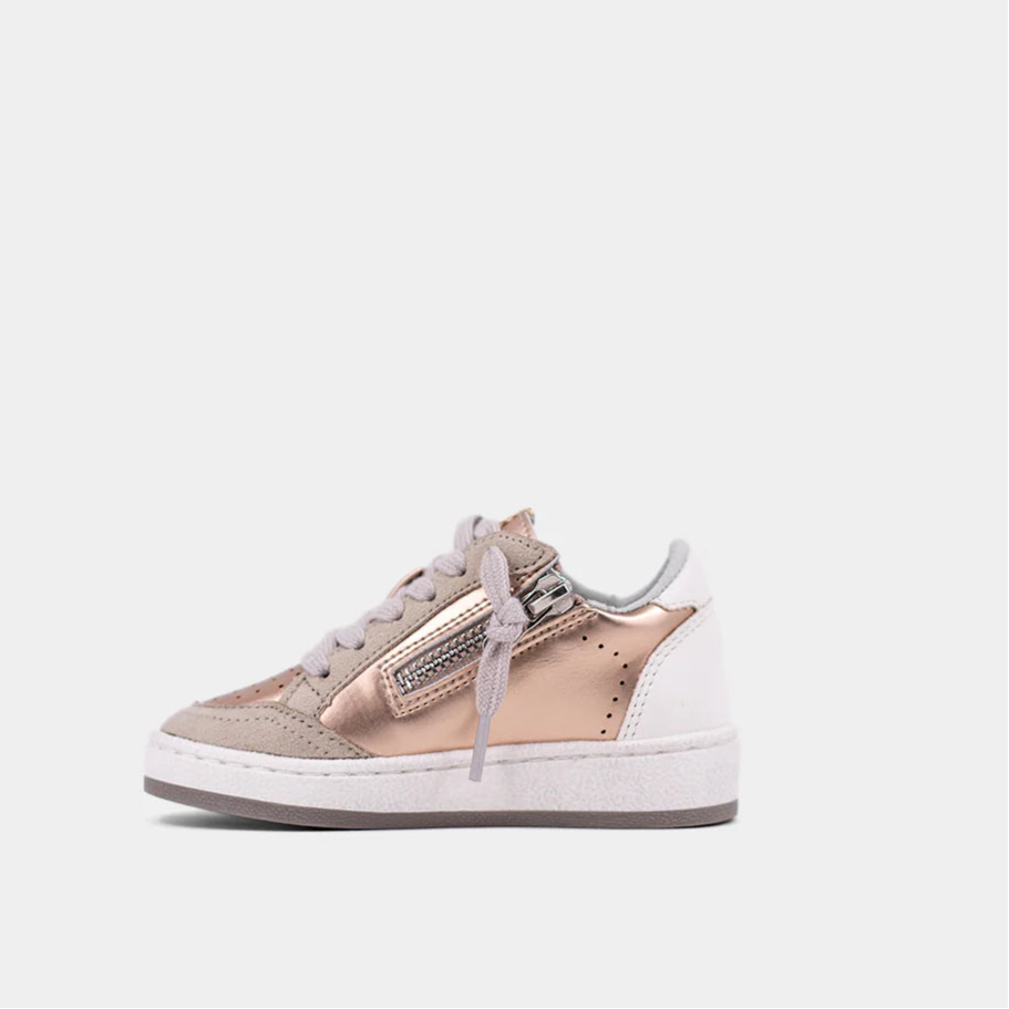 Introducing the PAZ MINI sneaker in a delightful peach hue, designed for both Kids and Toddlers! The bold peach signature star, complemented by fresh white and silver details around the ankle, adds a stylish pop to this playful design. Suede panels provide texture and depth, offering the perfect balance of shine and softness. With a sturdy rubber sole for comfort and an easy-access zipper in Toddlers sizes, these sneakers are perfect for little ones to shine in style on every adventure!