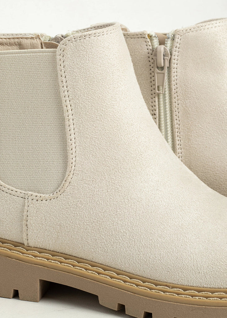 Cool, comfy, and perfectly neutral- the ZOPHIE MINI in Light Grey Suede is the ultimate go-to boot for toddlers and kids this season. Designed with a soft faux suede upper and stretch side panels for easy wear, this Chelsea-style boot sits on a chunky lug sole for extra grip and everyday durability. A soft shade that goes with everything.