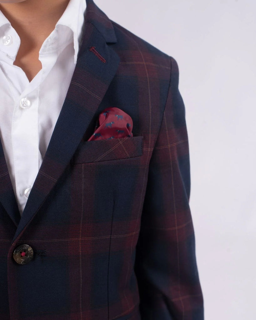 Navy/Cranberry Plaid Stretchy Mod Suit