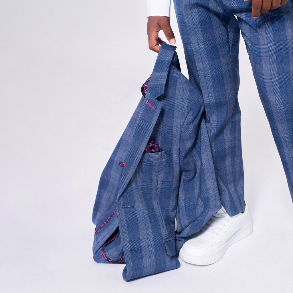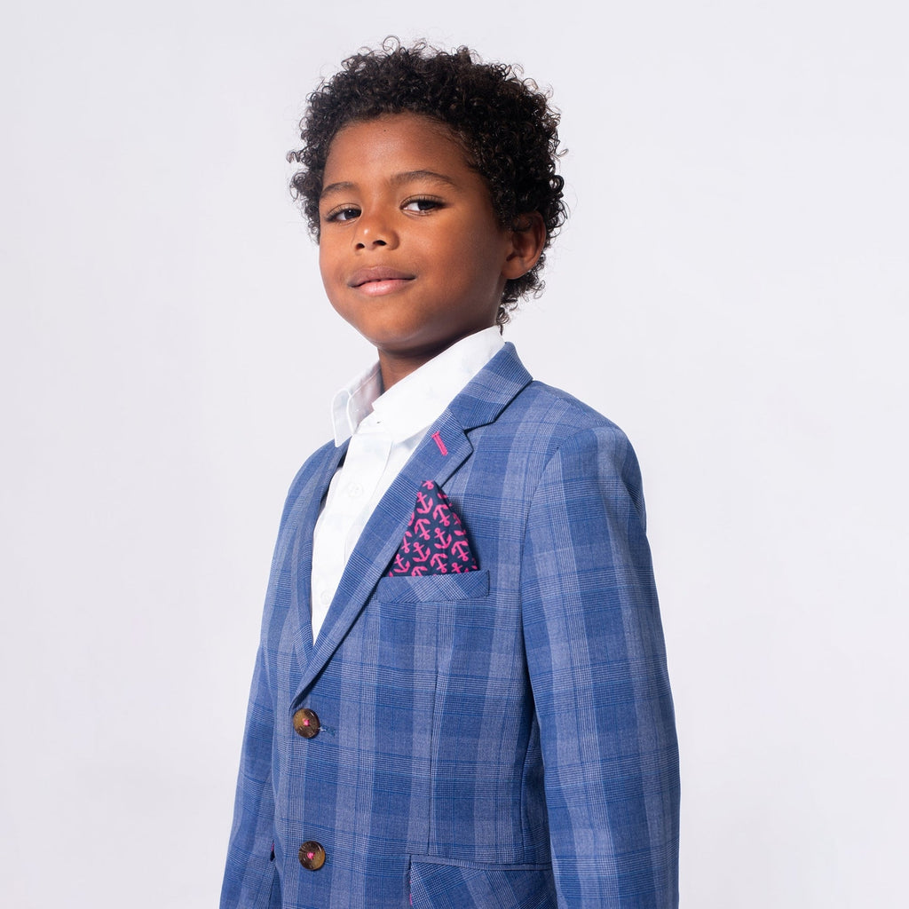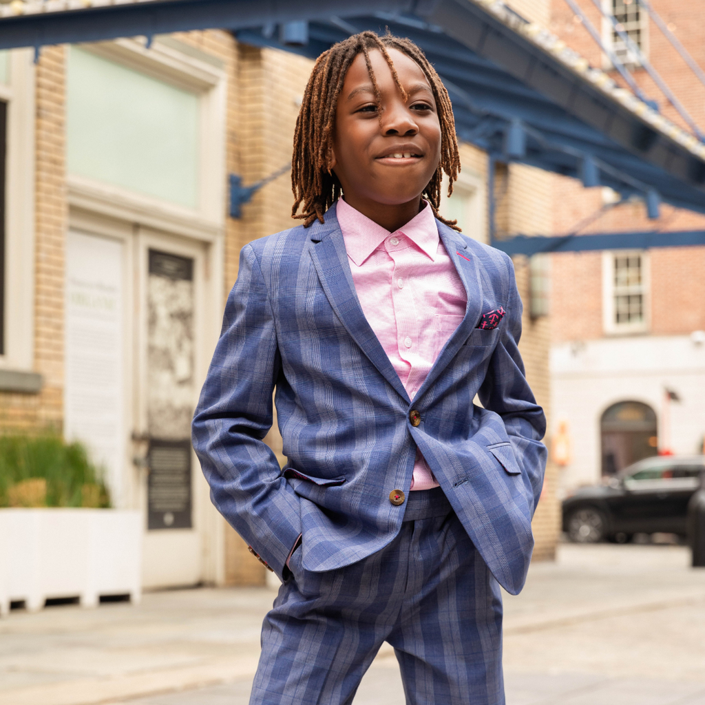 Dressed to impress! The Stretchy Mod Suit in Indigo Glen Plaid combines sleek style with unbeatable comfort. Crafted with a soft, flexible fabric, it moves with your active kid while keeping them sharp for any special occasion. Perfect for weddings, family photos, or big events—this suit is all about looking good and feeling great!