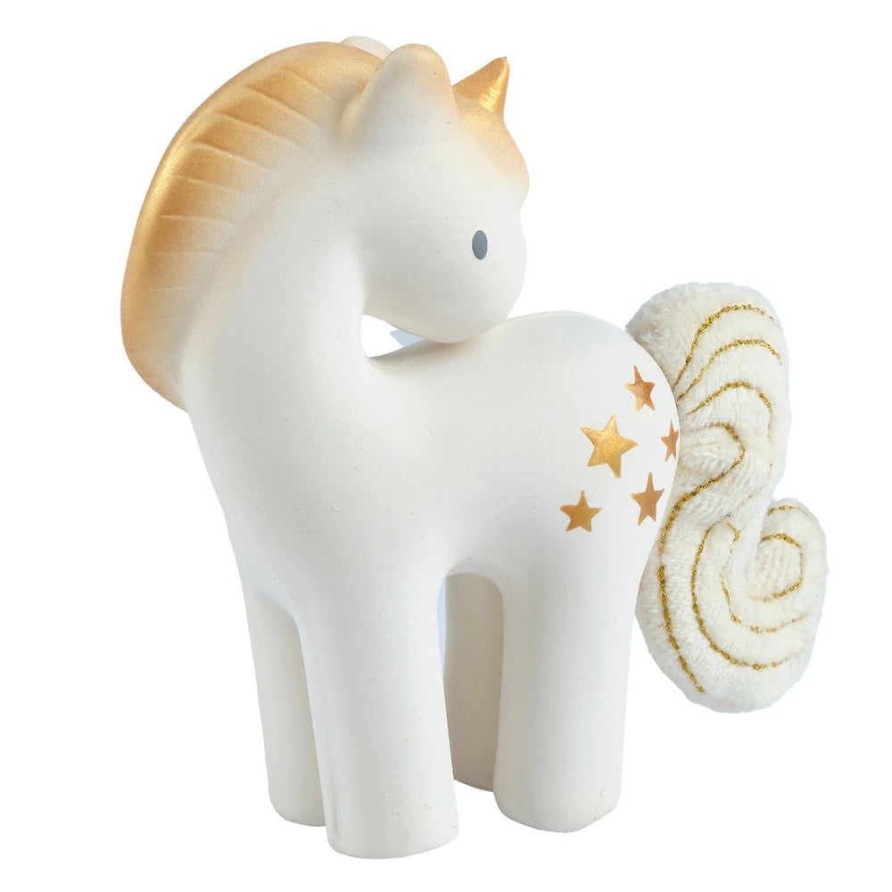 Shining stars unicorn is made from soft organic natural rubber which is ideal for teething babies and soothing irritated gums. 100% plastic-free.