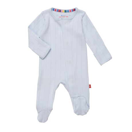 our parent favorite footie is an everyday (and night) essential with magnetic closures that make dressing easy. magnets are quick, quiet, and a lifesaver for middle-of-the-night changes. GOTS certified organic cotton makes this baby wardrobe staple breathable and gentle on sensitive skin.