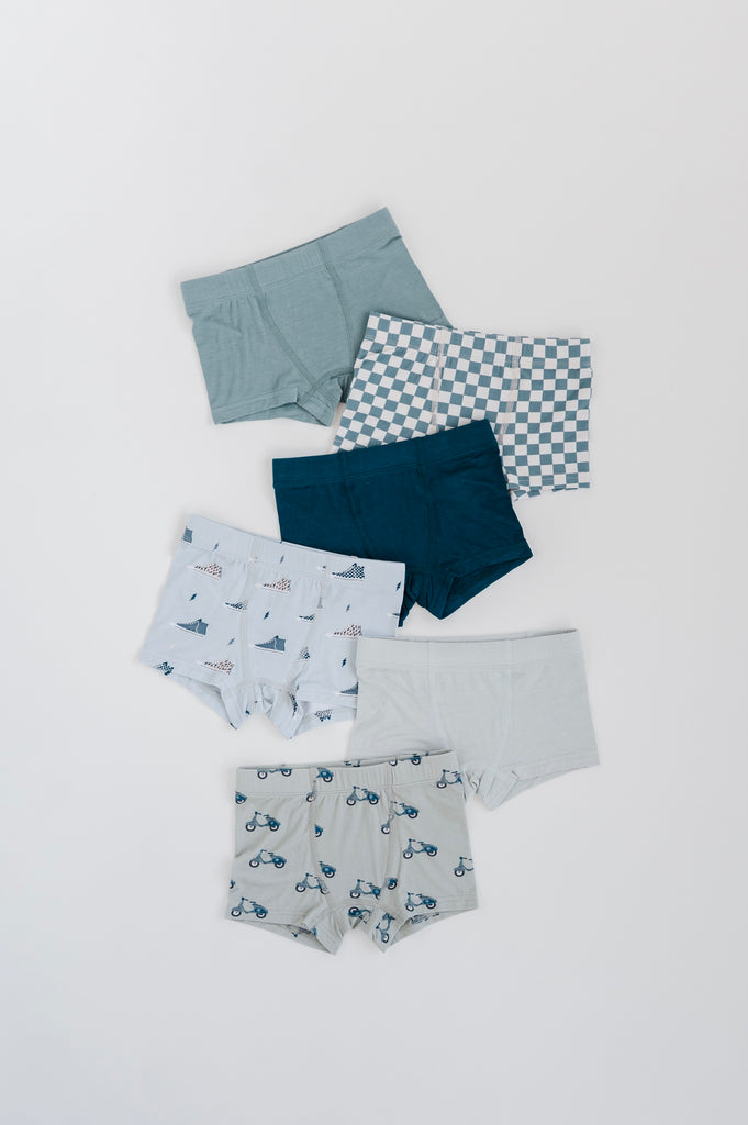 Our Two-Pack Boxer Set for boys comes with the sweetest prints and colors to choose from! Includes 1 solid and 1 print in coordinating colors. Our boxers are a slim fit and designed to be snug but not tight. Made with our premium bamboo jersey fabric. Designed in the US | All colors and designs are exclusive to Babysprouts Clothing Co