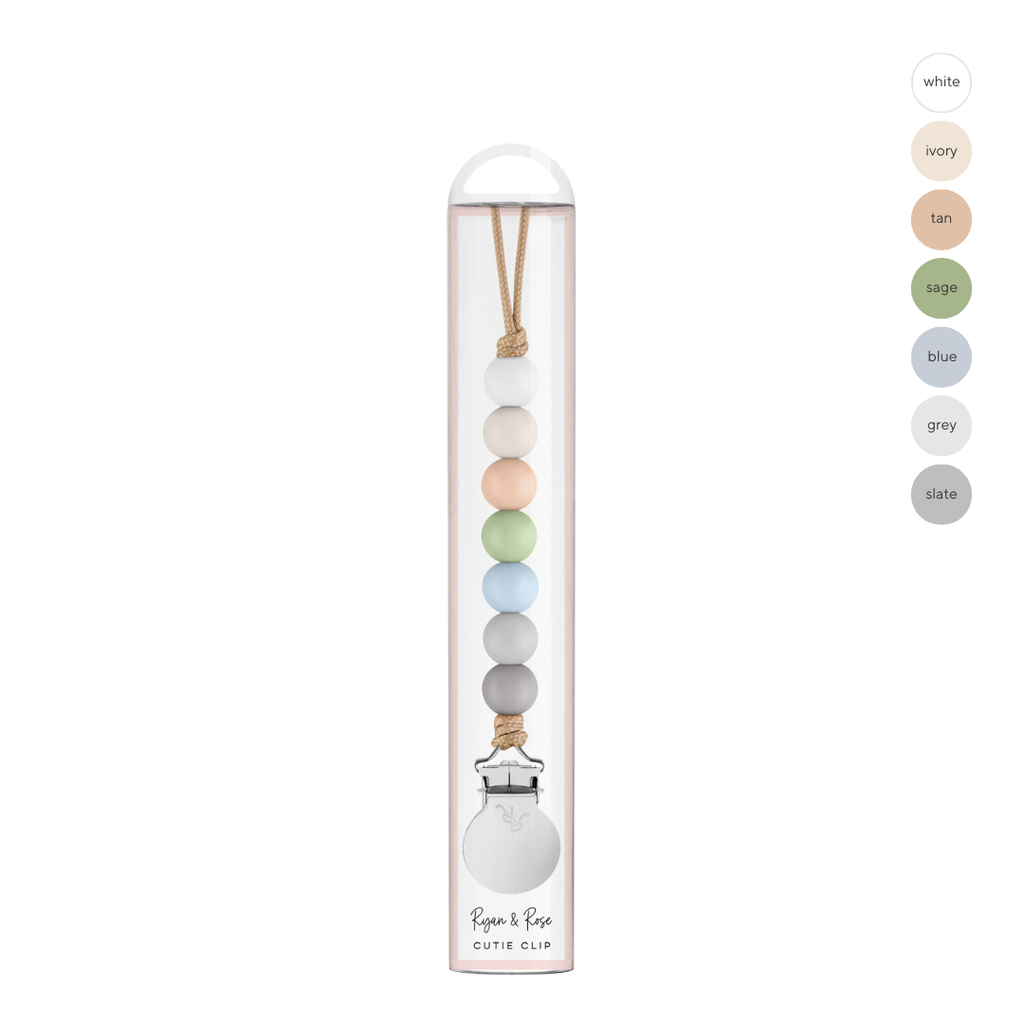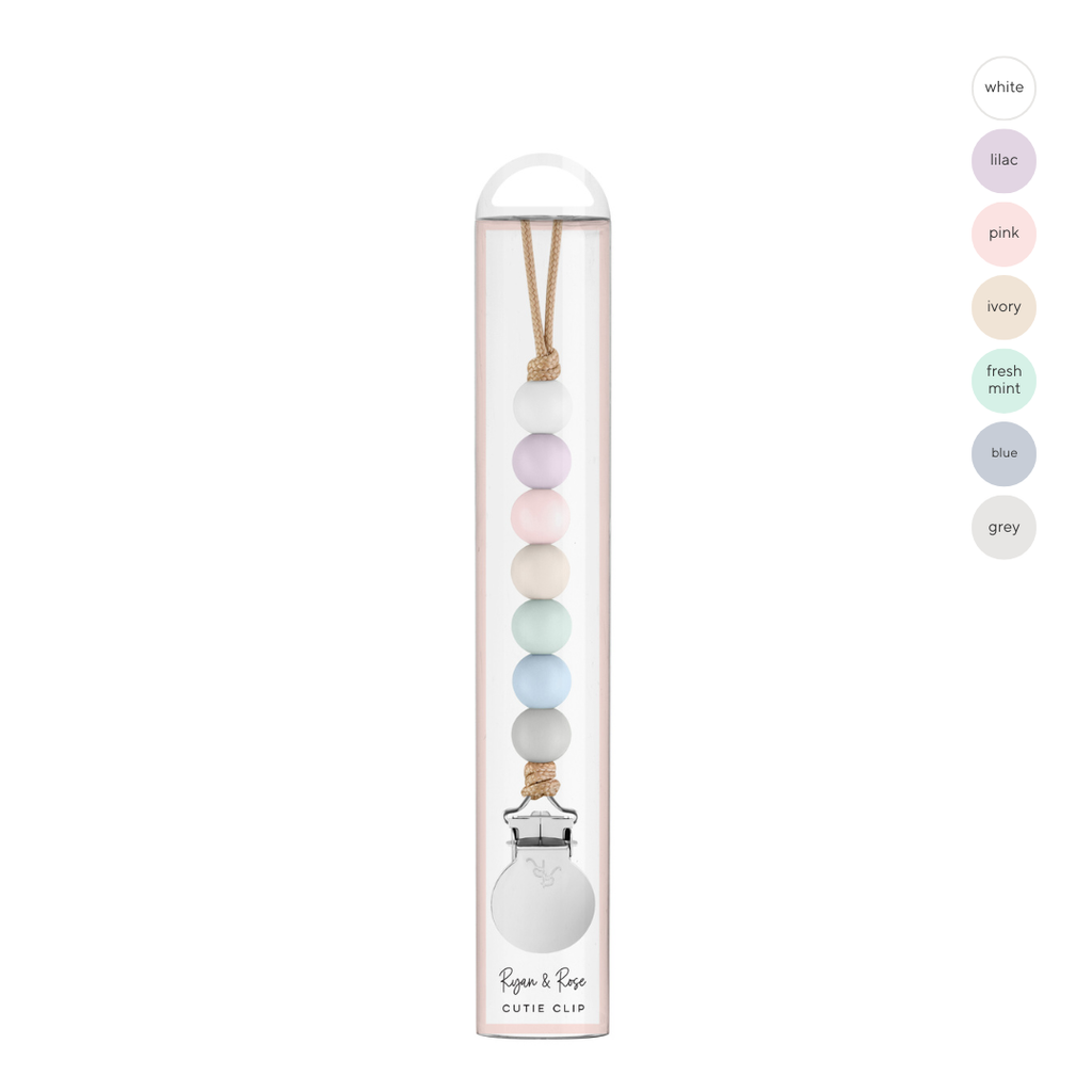 Say goodbye to lost pacifiers with a handmade Cutie Clip. They are not only lightweight and easy to attach but also flexible, safe and handmade by moms in Tennessee. Our pacifier clips are the ideal length, keeping pacifiers off the ground and preventing the risk of strangulation, ultimately giving parents peace of mind. It's not just for pacifiers either—it can also be used with teethers and toys, ensuring they are always within reach and not getting lost. Each Cutie Clip is handmade and inspected by the team to guarantee both safety and durability. With the stainless steel Ryan & Rose clip, you can rest assured that it will stay securely attached.