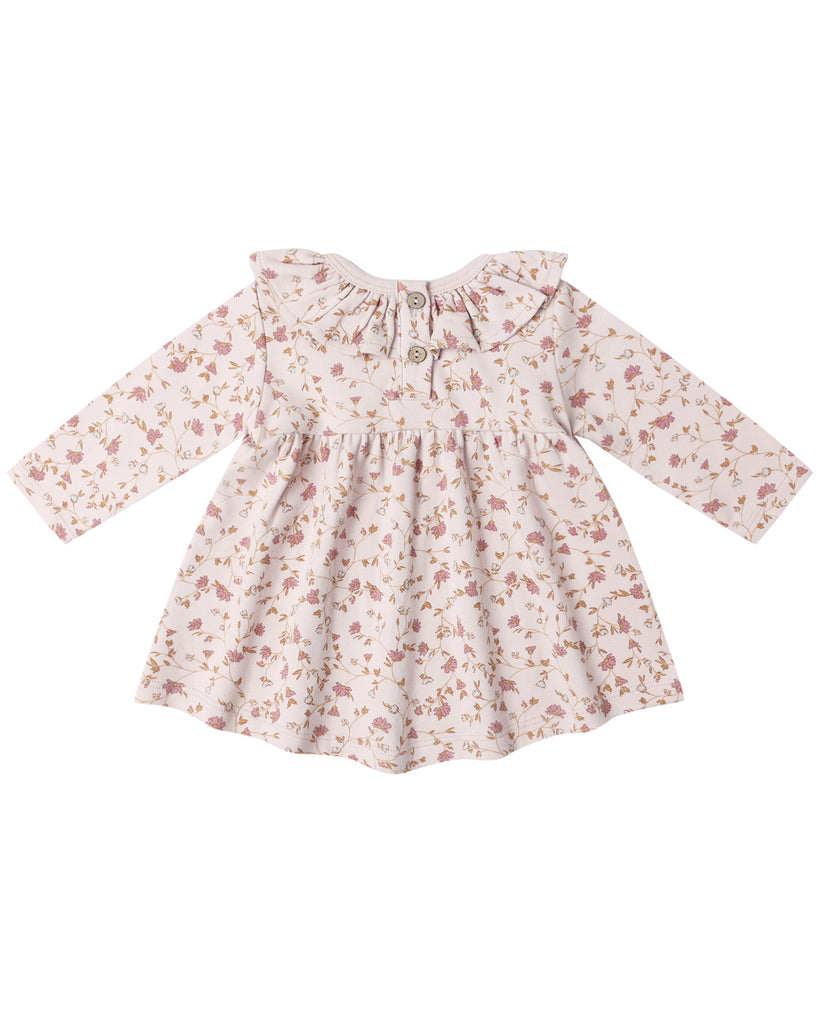 This darling dress is crafted from soft brushed jersey and features a charming collar, coordinating bloomers, and a back button placket for easy dressing. A sweet piece for everyday wear.
