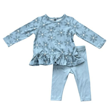 Long Sleeve Peplum Set-Daisy In Ski Blue