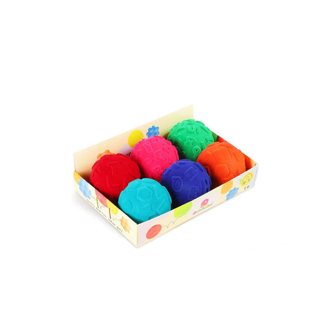 These irresistible fuzzy and squishy balls keep kids safe and entertained for hours at end. The velvety surface provides sensory stimulation. The perfect size for one-handed or two-handed play. They bounce well making them versatile toys for many games. Made from natural rubber foam, they are soft enough for little hands to squeeze. The soft material keeps kids safe and is great for children with special needs. This durable toy is fun and teaches something new at every age! Developmental Benefits: - Velvety flocked texture provides tactile stimulation. - Great for developing fine and gross motor skills! Ages: 1+ Special Needs: - Additional sensory input is helpful in many ways - for sensory development, as a fidget or comfort toy. - Safely practice and develop motor skills with this soft material. Variants: Alpha Learn ball Upper Case - Blue, Alpha Learn Ball Upper Case - Red, Alpha Learn Lower Case - Pink, Numeral ball - Green, Shapes ball - Orange, Shape ball - Turquoise