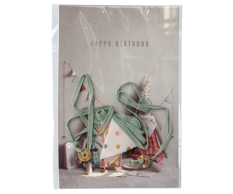 This mini garland is made to decorate wherever you find it suitable in your Maileg House of Miniature. Put it in the living room or on the terrace. You decide! It has 7 fabric flags. Length is 85 cm.