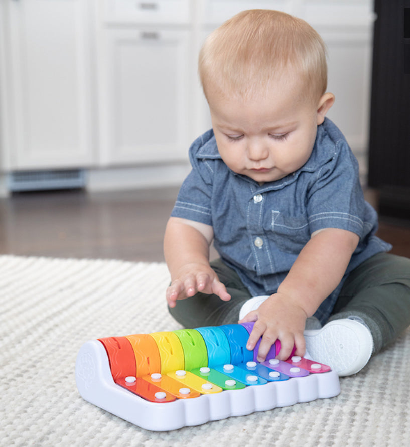 - Encourages fine motor skills, hand-eye coordination, early music learning