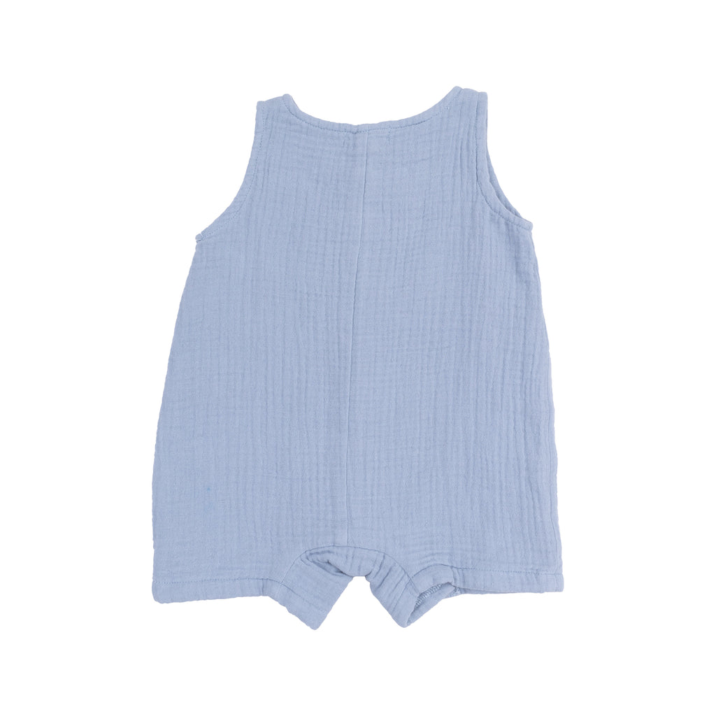 Solid Muslin Dusty Blue Sleeveless Shortie Romper