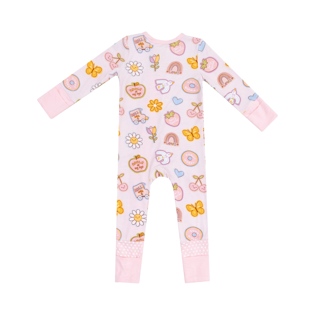 Pink Groovy Vibes Stickers 2-Way Zipper Romper