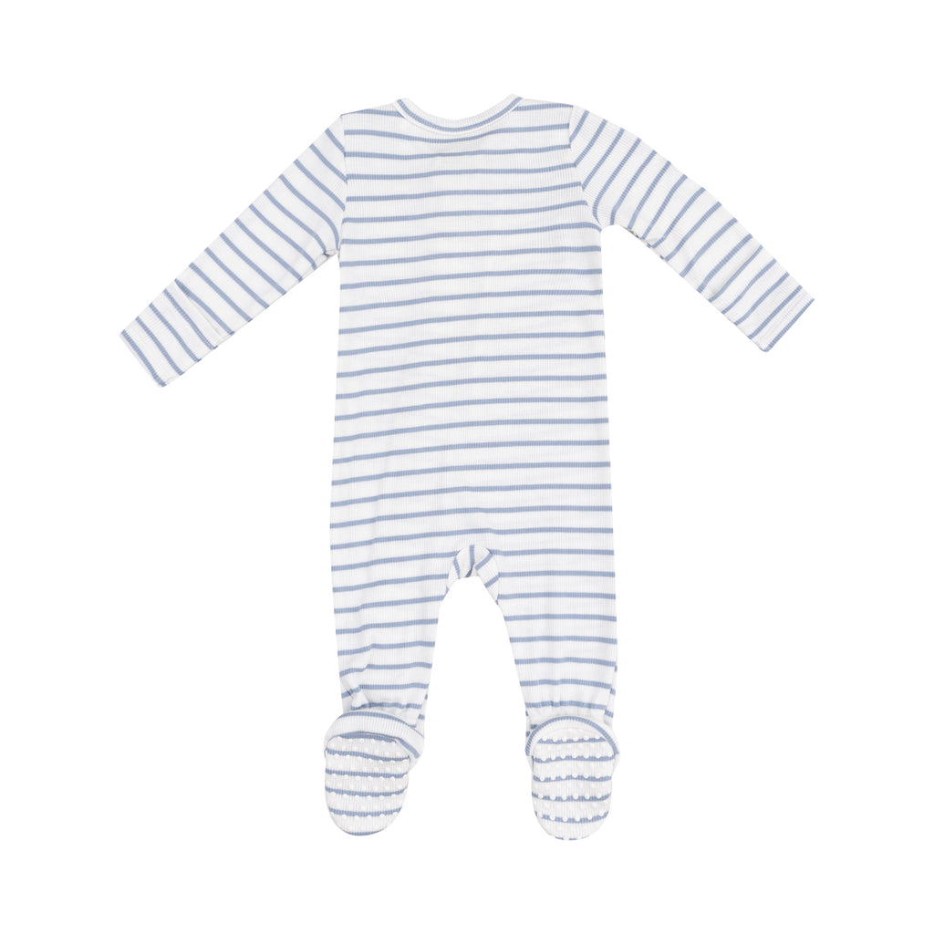 French Stripe Dusty Blue 2-Way Zipper Footie