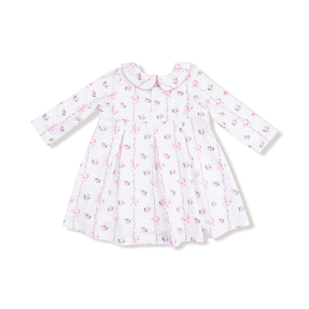 Dainty Buds and Bows Stripe Long Sleeve Peter Pan Collar Dress