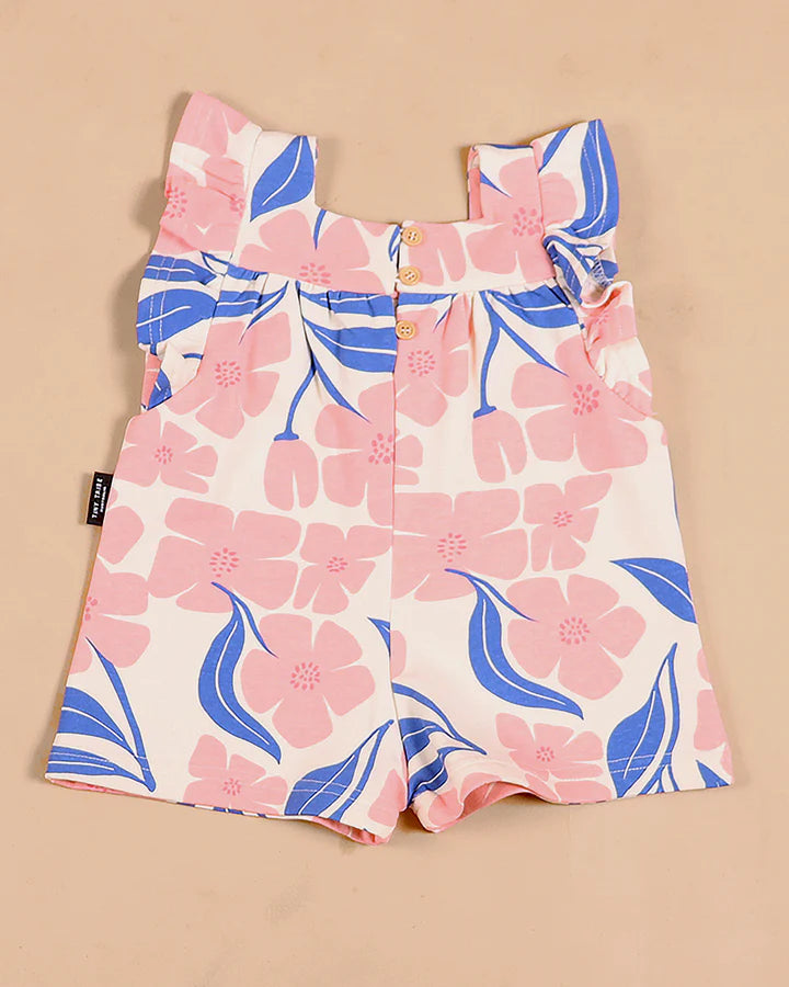 This classic fit ruffled sleeve playsuit features a Large Bloom print all over. Crafted from French Terry, the composition provides comfort and durability. Finished neck and hem detail. Designed in Australia.