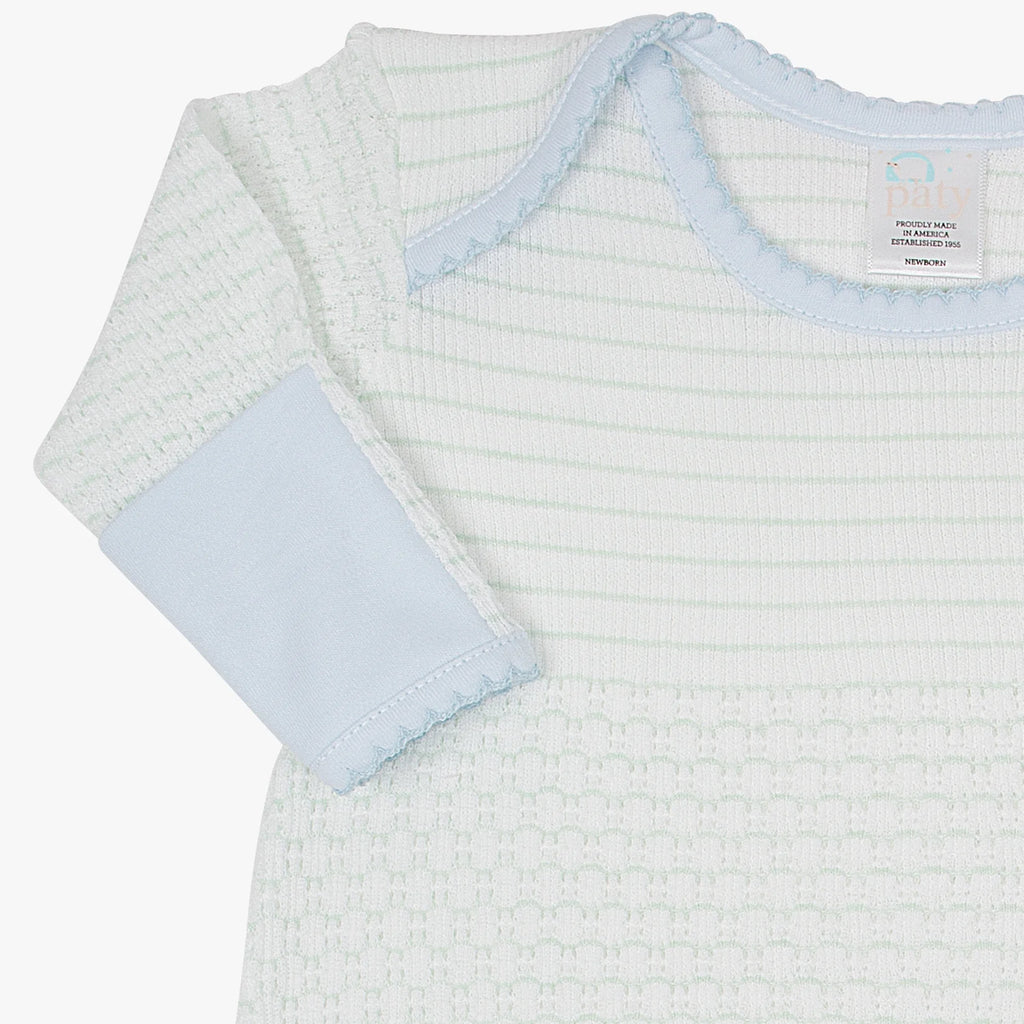 Built-in fold-over cuffs at the hands keep little ones cozy and help protect delicate skin from scratches