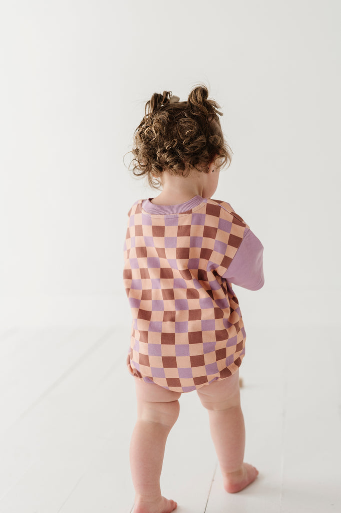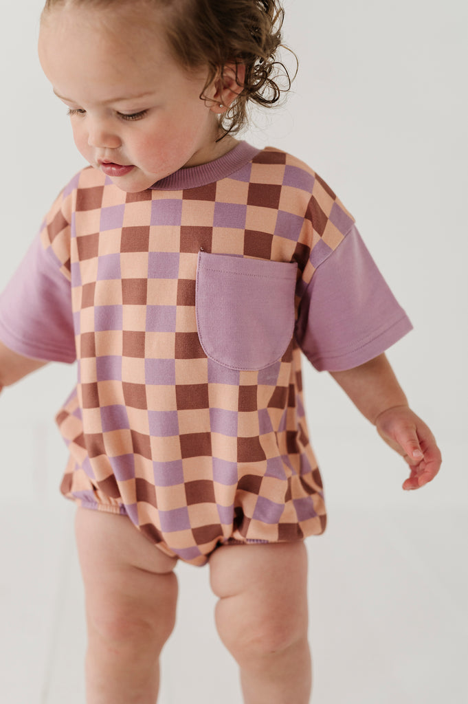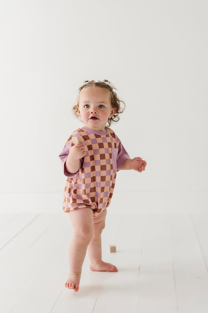 Checker in Burlwood Short Sleeve Colorblock Romper