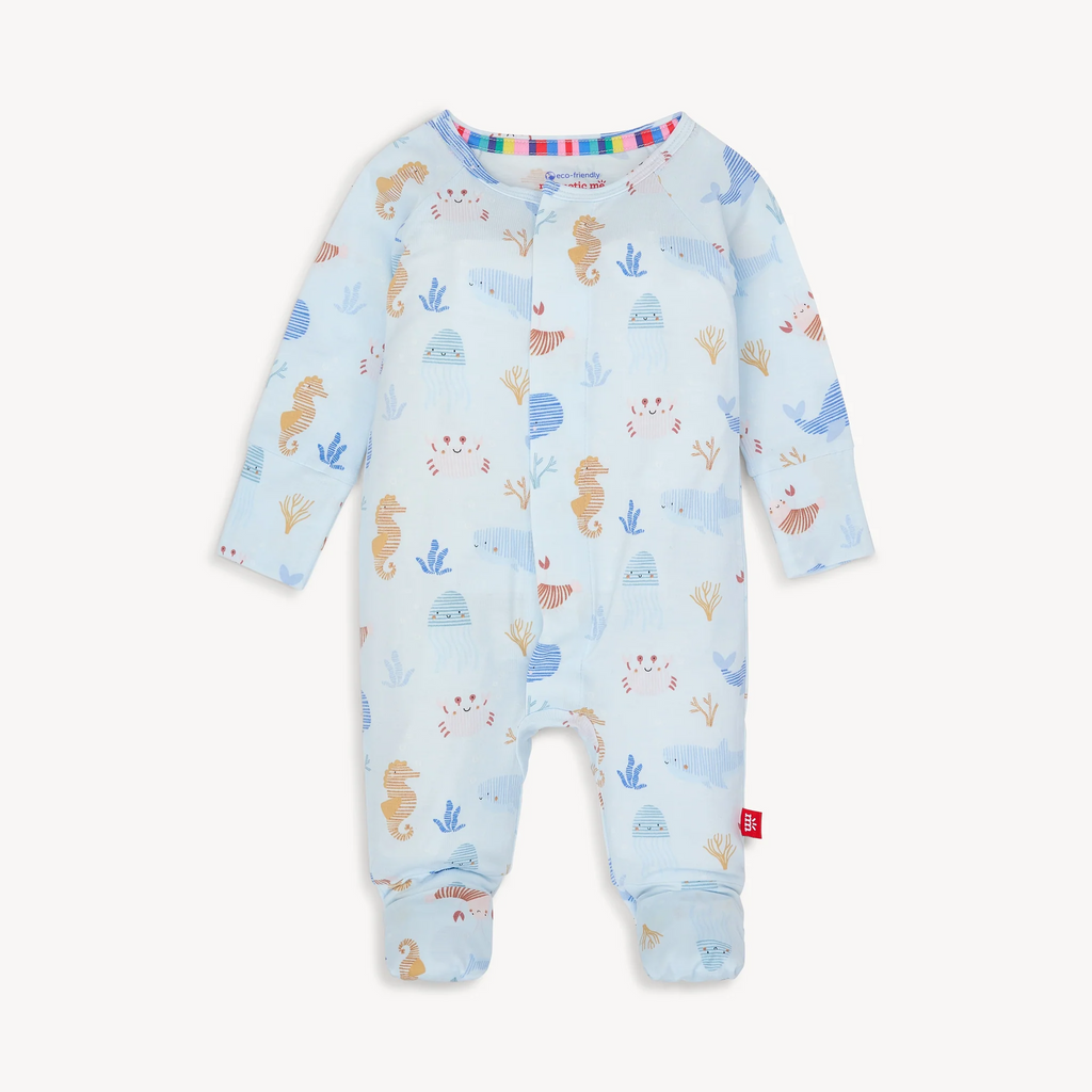 meet our grow with me convertible coverall, a one-piece that lets you adjust its features as your baby grows. magnetic closures ensure quick and quiet changes, and foldover cuffs for hands and feet extend the length and life of the coverall. made of eco-friendly TENCEL™ modal that's silky soft, breathable, and gentle on sensitive skin—it's the one piece of clothing baby won’t outgrow in the blink of an eye.