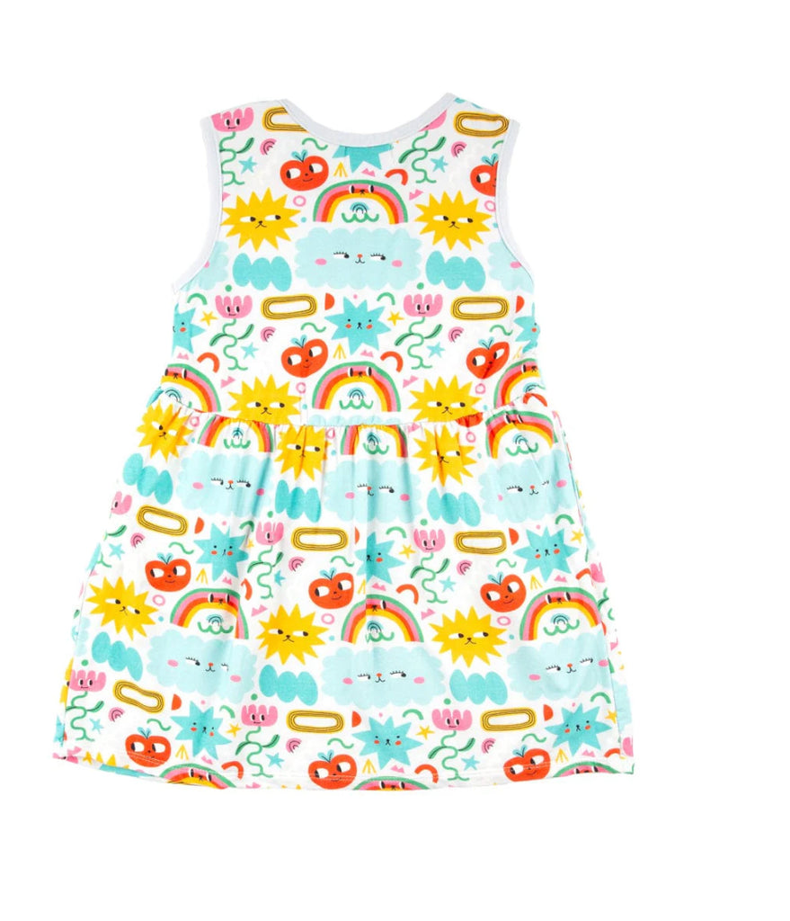Summertime fun is guaranteed with the cool and chic Lulu pattern sleeveless dress! Casual everyday comfort and fit meets an endless rainbow of colorful cuteness.