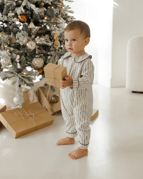Forest Pinstripe Baby Pajama Romper