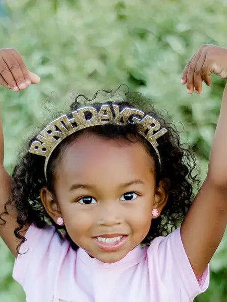 Every little girl needs the perfect headband to complete her look! The Gold Birthday Girl Headband is the perfect hair accessory for celebrating a Birthday. Features: Gold glitter "Birthday Girl" arching the top of the headband. Satin lined headband. Glitter accents are “shed free.” One size fits all. Pair this headband with a matching Sweet Wink tutu and shirt for a complete head-to-toe outfit!