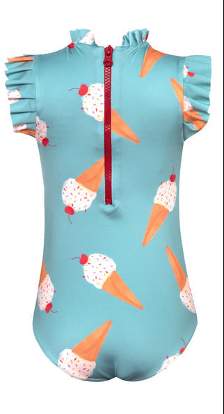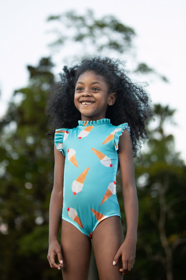 Discover our famous alisson swimsuit, loved by all for its elegance and for how stunning it looks when worn. With short sleeve and neck ruffles and back zipper. This swimsuit is an absolute gem! The fabric has UPF50+ protection factor which means that it acts as a protective shield against the sun’s UV rays. Made in Colombia.
