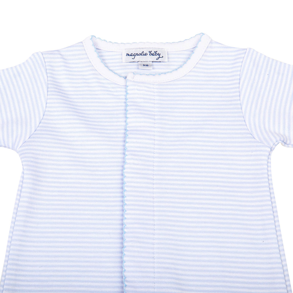 Experience the exceptional quality and comfort of Magnolia Baby's Mini Stripes Converter in Blue. Crafted from 100% Pima cotton, this bodysuit is the epitome of comfort, style, and luxury. It boasts of the brand's signature sophisticated design and finely detailed hand embroideries. Ideal for everyday wear or special occasions, this non-footed bodysuit is a testament to Magnolia Baby's commitment to smart, functional designs without sacrificing detail, distinction, or stylish appeal.