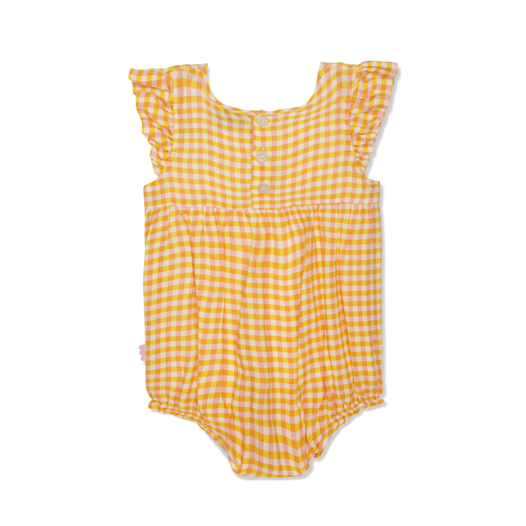 Natural/Cyber Yellow Gingham Linen Baby Girl Romper