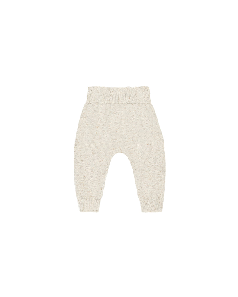 Sweater knit pants with unique heathered coloring. Faux tie tacked at front waist. Pairs perfectly with the Knit Sweater!