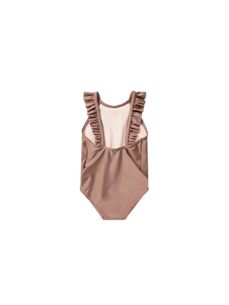 Arielle is a classic one-piece swimsuit with playful ruffle scooped back.