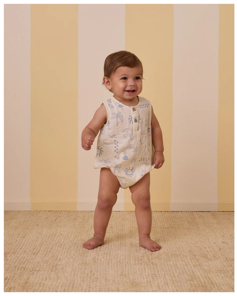 Our Beau Romper is the perfect summer outfit for your little one. This romper features a button placket on the chest and bottom snaps for easy changing.
