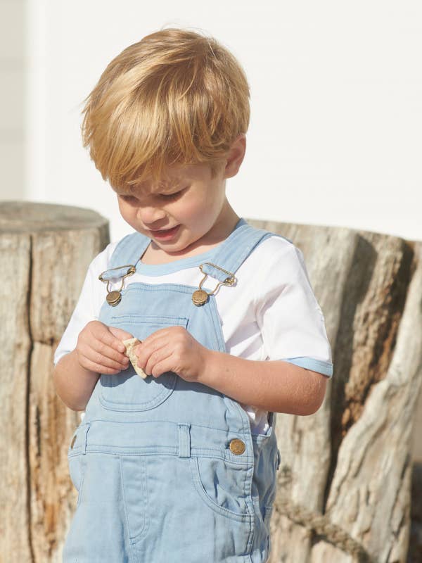These adorable cotton t-shirts with colourful edges are super versatile and work perfectly with all outfits. They are available in beautiful pastel and primary colours. Dotty Dungarees tops are the perfect accessory to our overalls, dresses and shorts and our customers increasingly buy an outfit: - super soft, sustainably sourced cotton - classic cuts that never go out of style - attention to detail (bespoke buttons) - easy to put on/take off Dotty Dungarees is a female founded brand, based in the UK, and stocked all over the world. They stand the test of time and trend.