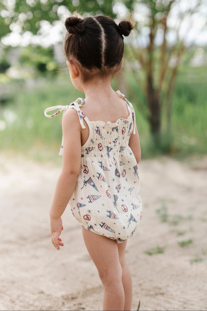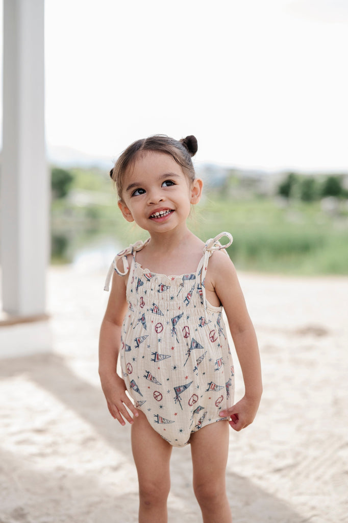 USA Flag Tie-Smocked Bodysuit