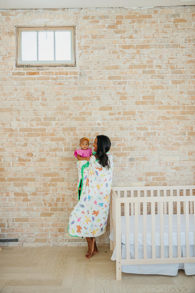 - PREMIUM POLYESTER/RAYON BLEND – Our Jumbo three-layer quilts are designed with your comfort in mind. That’s why we created them with ultra-soft, breathable fabric with just the right hint of stretch. You can feel confident that the whole family will feel cozy and comfortable snuggled in this special throw blanket. These quilts are made from the same ultra-soft and stretchy material as our original knit swaddle blankets.