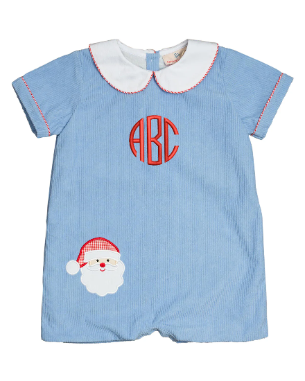 Blue Corduroy Santa Appliqué Pocket Shortall