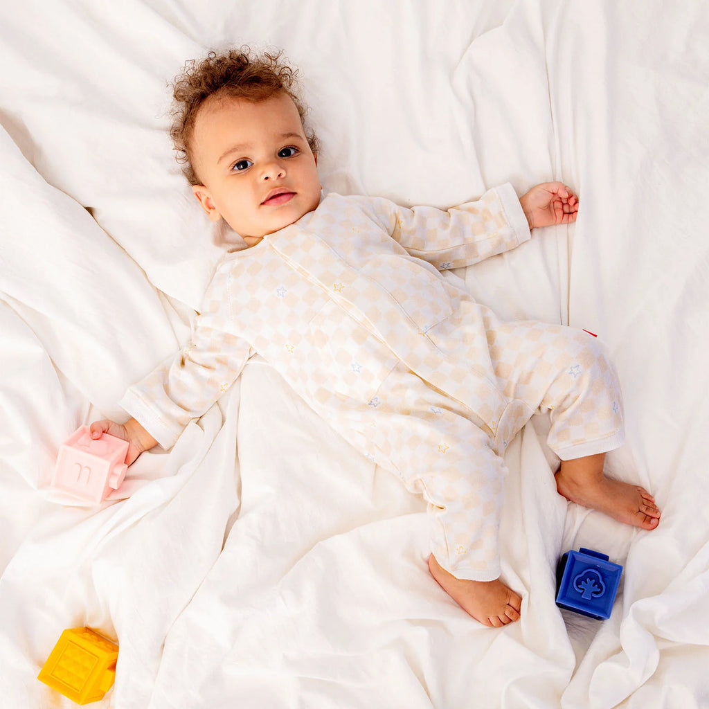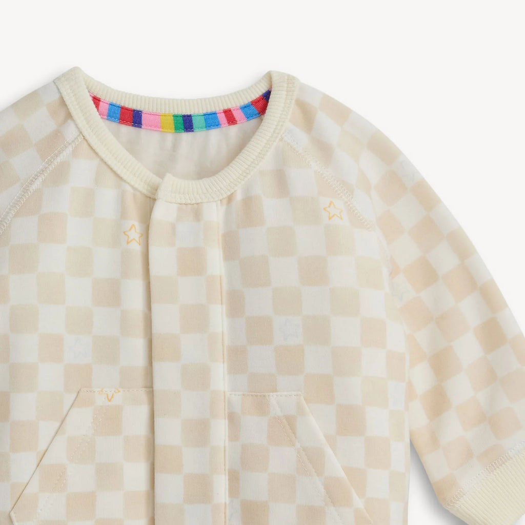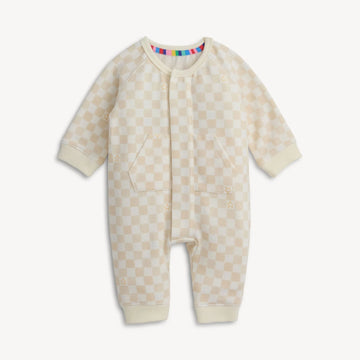 Chamois Checkerboard Brushed Fleece Magnetic Romper