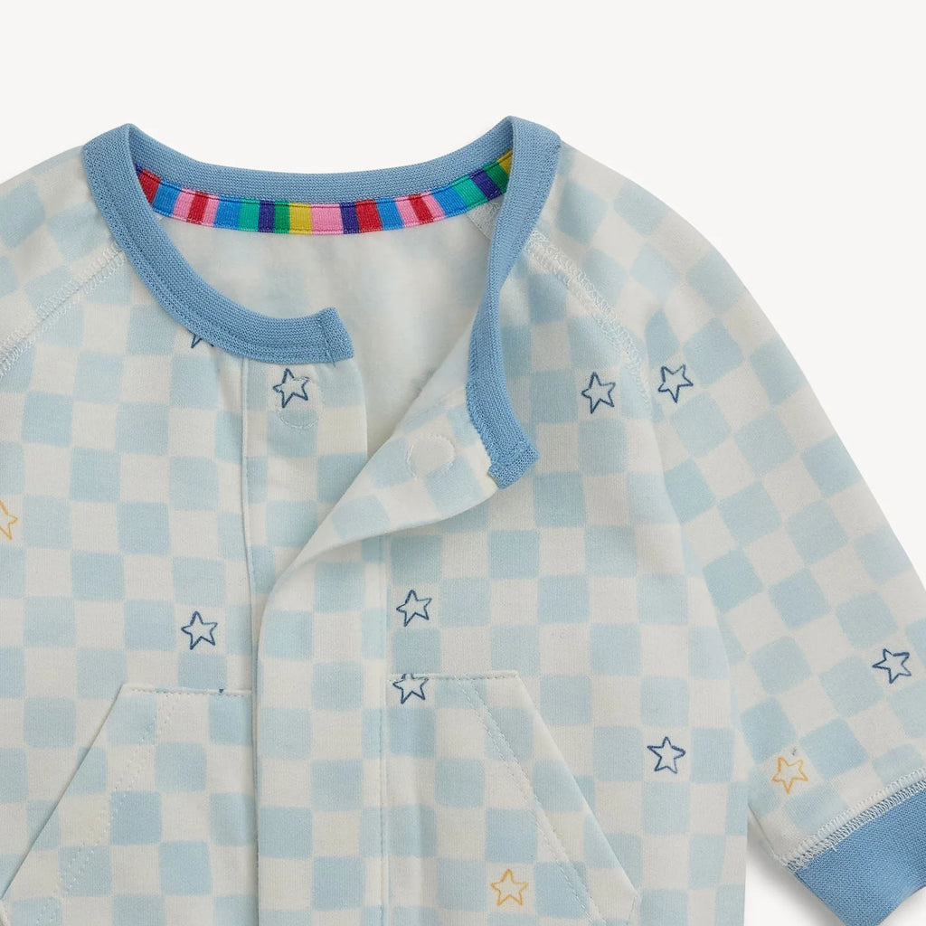 Grey Checkerboard Brushed Fleece Magnetic Romper