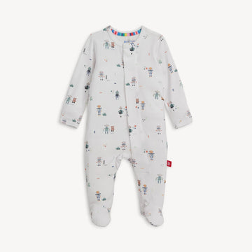 Our modal Magnetic Footie, designed with magnetic closures, is a quick and quiet lifesaver for all-day and middle-of-the-night diaper changes—that's up to 12 times a day (!). Made from sustainable modal, it's a silky-soft and temperature-regulating sleeper to keep your little one comfy from head to toe.