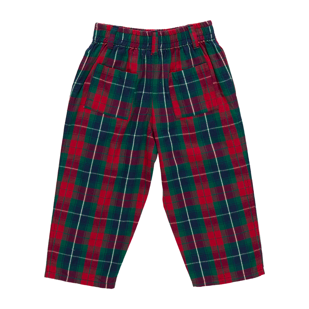 Check this out! Our tried and true Red Tartan makes a brilliant holiday statement on our collection classic Boys Jack Pant. A traditional combination of red, green, and navy weaves together to create the perfect plaid. These easy to wear, elastic waist, pull-on pants feature a faux button closure, belt loops and both side and back pockets perfectly sized for pine cones, candy canes and more. Pair with our matching Boys Jack Shirt for a holly look or mix with our Jack Shirt in Tree Farm Embroidery.
