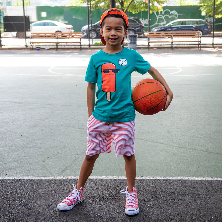 Our classic is back in a simple stripe print. The iconic Camp Shorts are a favorite for a reason: soft fabric, a sporty-but-not-too-baggy cut, a wide elastic waistband, and functional drawstring!