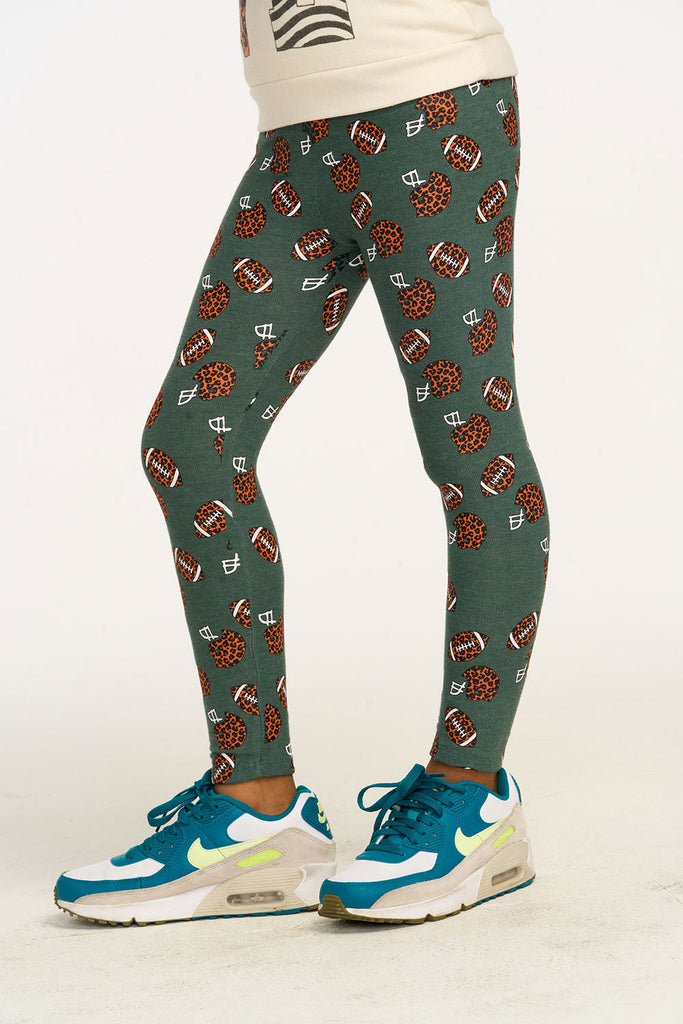 Let your daughter show her wild style with these cozy knit Cheetah Football Leggings! 🐆 Made from recycled poly blend fabric, these print-packed dark forest green classic leggings are purr-fect for fall and back-to-school styles. 🗣️