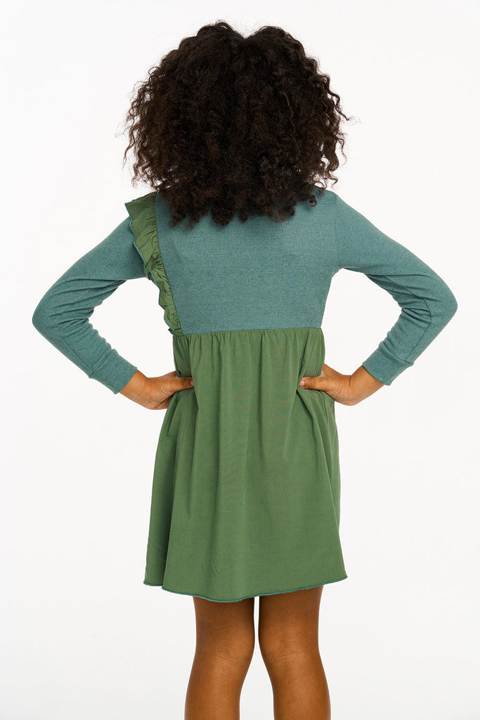 Show your little princess off in this fun & funky One Ruffle Dark Forest Green Dress!