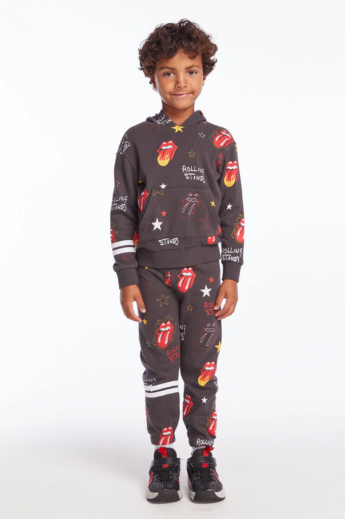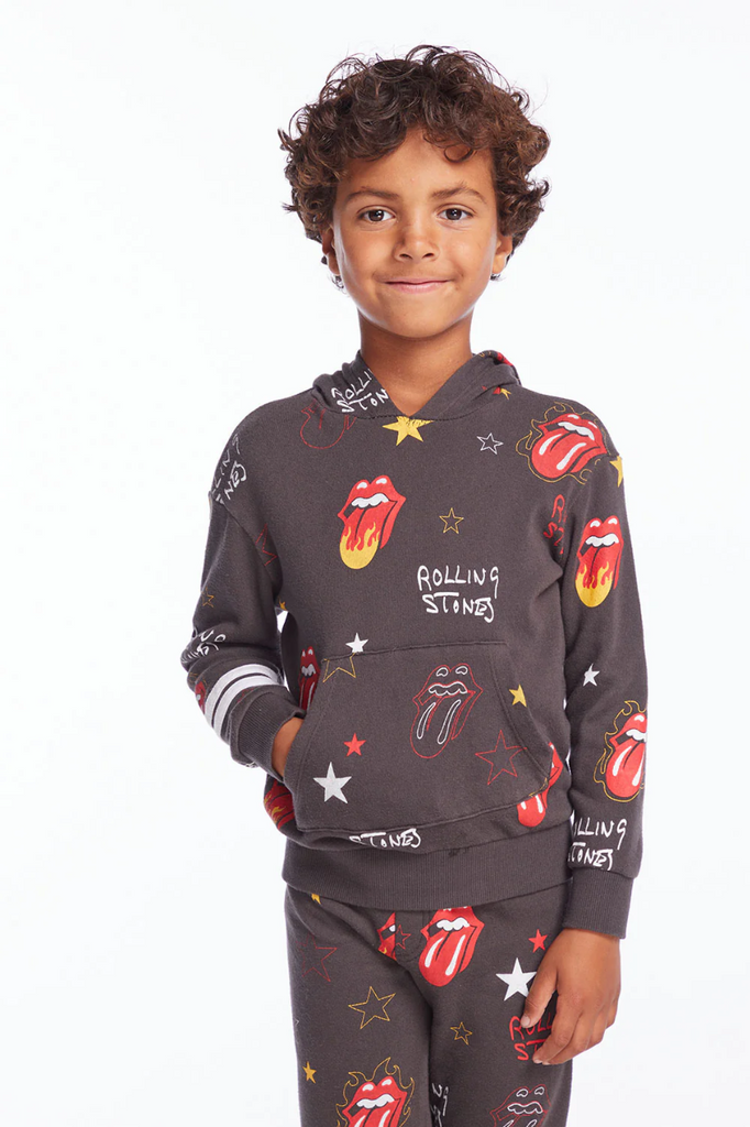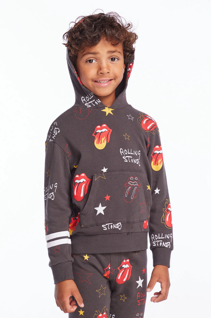 Paint it black in this Rolling Stones pullover hoodie.