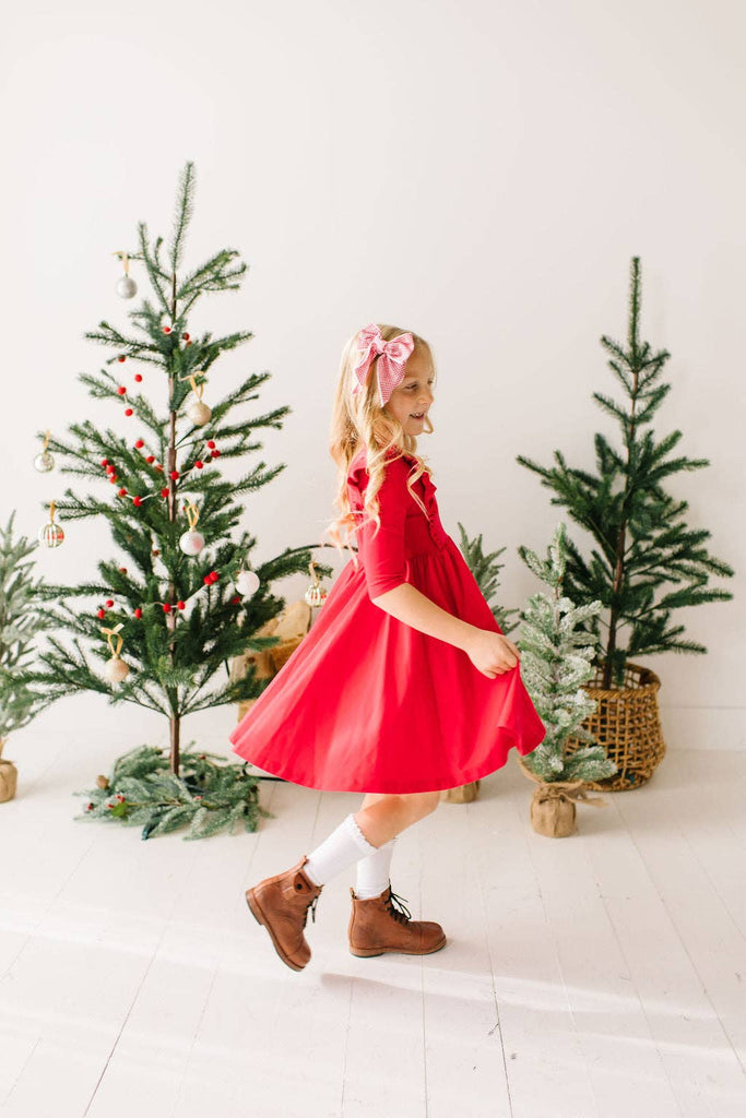 A classic ballet inspired twirl dress in our signature extra soft and stretchy fabric with side seam pockets, double lined bodice, scoop back, 3/4 sleeves and a full circle skirt for maximum twirls!