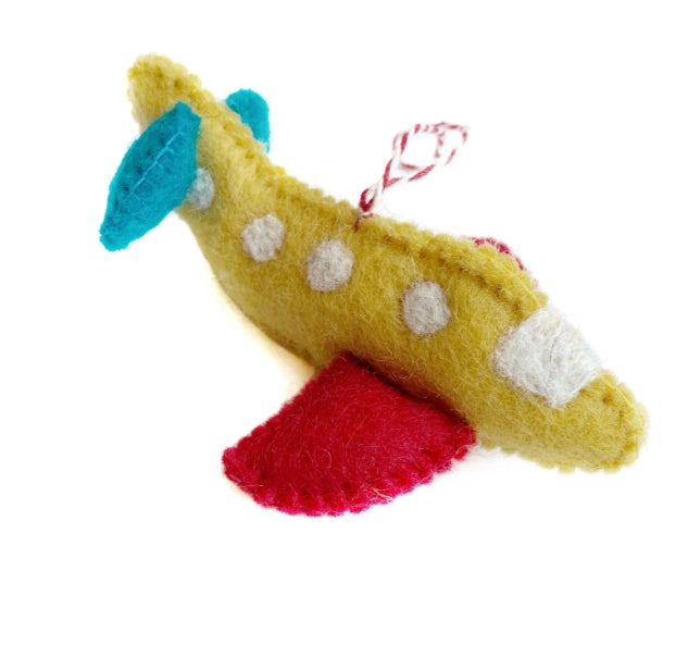 Take off! This colorful airplane ornament delivers smiles as it flies across your Christmas tree! Our fair trade Airplane Ornament is handmade by artisans in Nepal, Asia using colorful sheep wool. Popular for their charming and durable designs, felt ornaments are perfect for children of all ages.