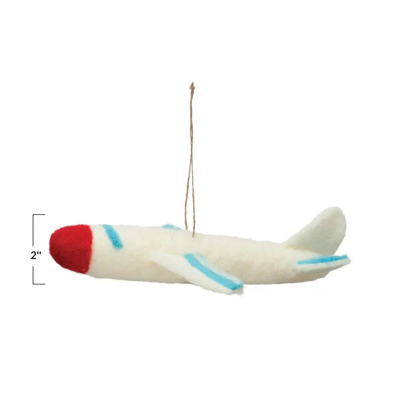 These airplane ornaments are a beautiful addition to any home during the Christmas season. Made out of wool felt. These look great on any festive tree, and make decorating with friends and family fun
