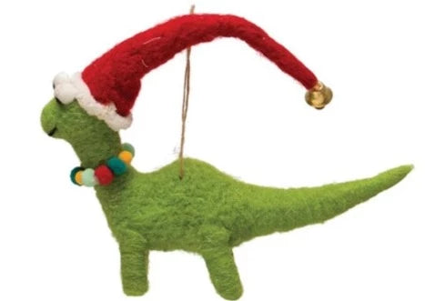 These ornaments are a beautiful addition to any home during the Christmas season. Made out of wool felt, these dinosaur ornaments come in 4 festive styles. These look great on any festive tree, and make decorating with friends and family fun