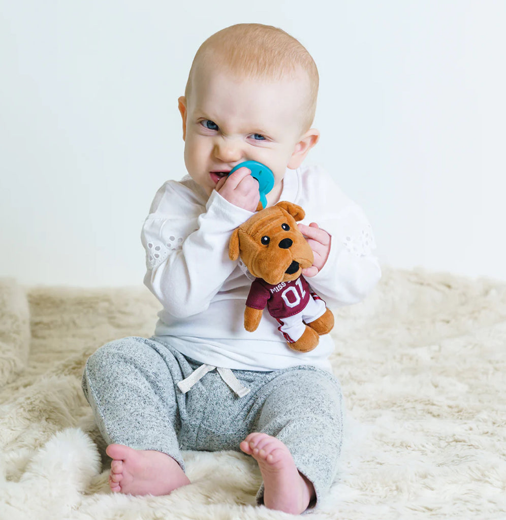 The plush mascots are the perfect size for your little ones to hold. We’ve all been there when a pacifier has been dropped, misplaced or just lost for good. The attached plush toy is easy to spot and is the perfect replica of your favorite college mascot. Created specifically in each mascot’s likeness, the lightweight design and soft fabric makes it the perfect cuddle toy for your baby.