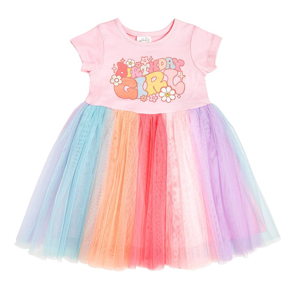 Groovy Birthday Girl Short Sleeve Tutu - Kids Birthday Dress